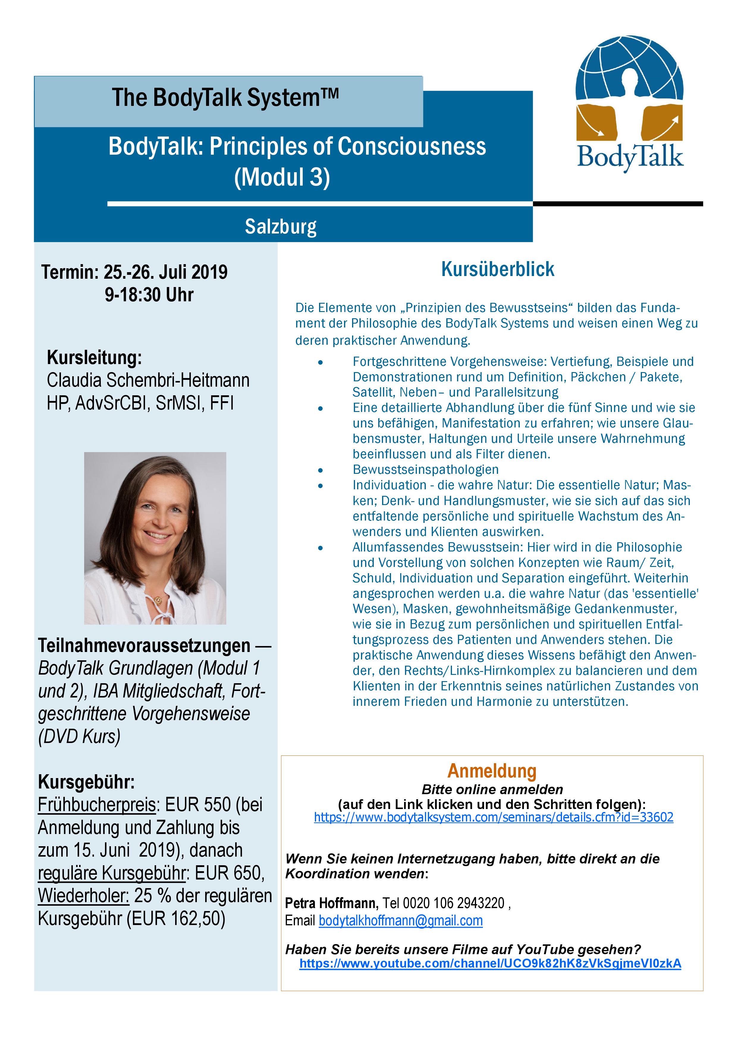 Die von mir koordinierten IBA BodyTalk Kurse und IBA PaRama- Lebenswissenschaften für 2019: